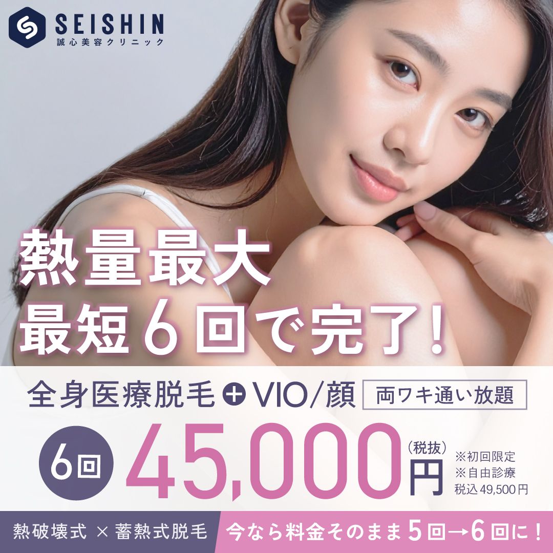誠心美容クリニック 西宮北口院西宮北口駅から徒歩1分平日:11:00~20:00(休診時間 15:00~16:00)/土日:10:00~19:00(休診時間 14:00~15:00)※祝日は該当曜日に準ずるアクタ西宮西館2階、阪急西宮北口駅直結の医療脱毛クリニック。熱破壊式×蓄熱式×3波長同時照射の最新ハイブリッド機で最短5回の高効率脱毛を低価格で提供。全身・顔・VIOプランや両ワキ3年通い放題など独自の無料保証で仕上がりまで支援。1回あたり料金(税込)8,250円/回〜公式サイトを見るプラン1回あたり(税込)総額(税込)回数期間回数券医療脱毛デビュープラン(全身脱毛セット)6回¥8,250/回¥49,5006回-他20件のプランを見る