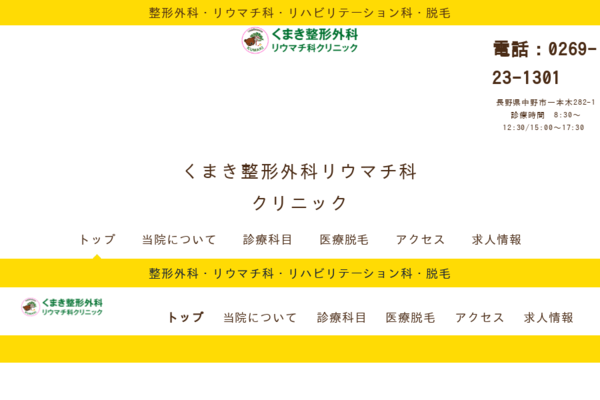 くまき整形外科・リウマチ科クリニック08:30~17:00 (月〜金)、08:30~13:00 (土)、日曜休(レーザー脱毛は原則予約制)整形外科クリニックが医師の管理下で行う医療レーザー脱毛。厚労省認定機器を用い肌質に合わせた照射で個室施術、10歳以上の男女に対応し局所ごとに都度支払いで受けられます。1回あたり料金(税込)3,300円/回〜公式サイトを見るプラン1回あたり(税込)総額(税込)回数期間都度払い男性ひげ(あご+首前方)¥3,300/回¥3,300--他16件のプランを見る