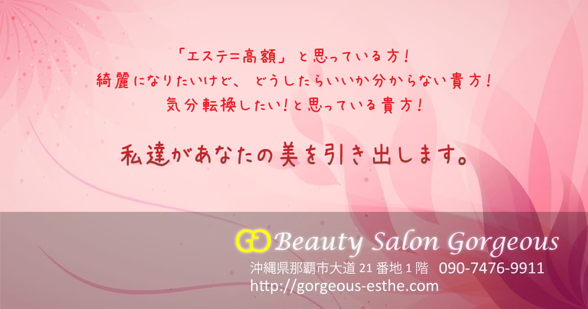 ビューティーサロン ゴージャス那覇市の隠れ家エステサロン。最新のFHR方式・光脱毛機を導入し、痛みが少なく来店回数を抑えた脱毛が受けられる点と、フェイシャルやハーブピーリング等多彩なメニューでトータルに美をサポートする点が強みです。1回あたり料金(税込)100円/回〜公式サイトを見るプラン1回あたり(税込)総額(税込)回数期間都度払い鼻下(ひげ) 1発¥100/回¥100--他25件のプランを見る