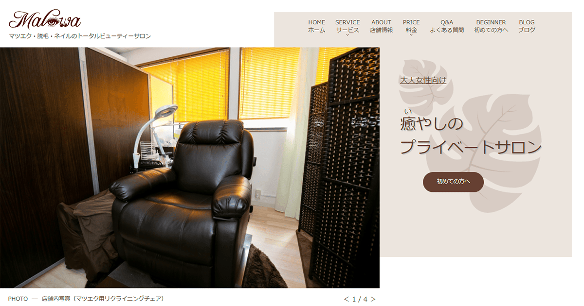Malowa山梨県都留市のトータルビューティーサロン。国産の-4℃冷却ハンドピース採用で痛みを抑え、脱毛と同時にイオン導入で美肌効果が期待できる点と、都度払い・コースから選べる柔軟な料金体系が特徴です。1回あたり料金(税込)3,850円/回〜公式サイトを見るプラン1回あたり(税込)総額(税込)回数期間回数券レディース/選べる1か所¥3,850/回¥3,8501回-他24件のプランを見る