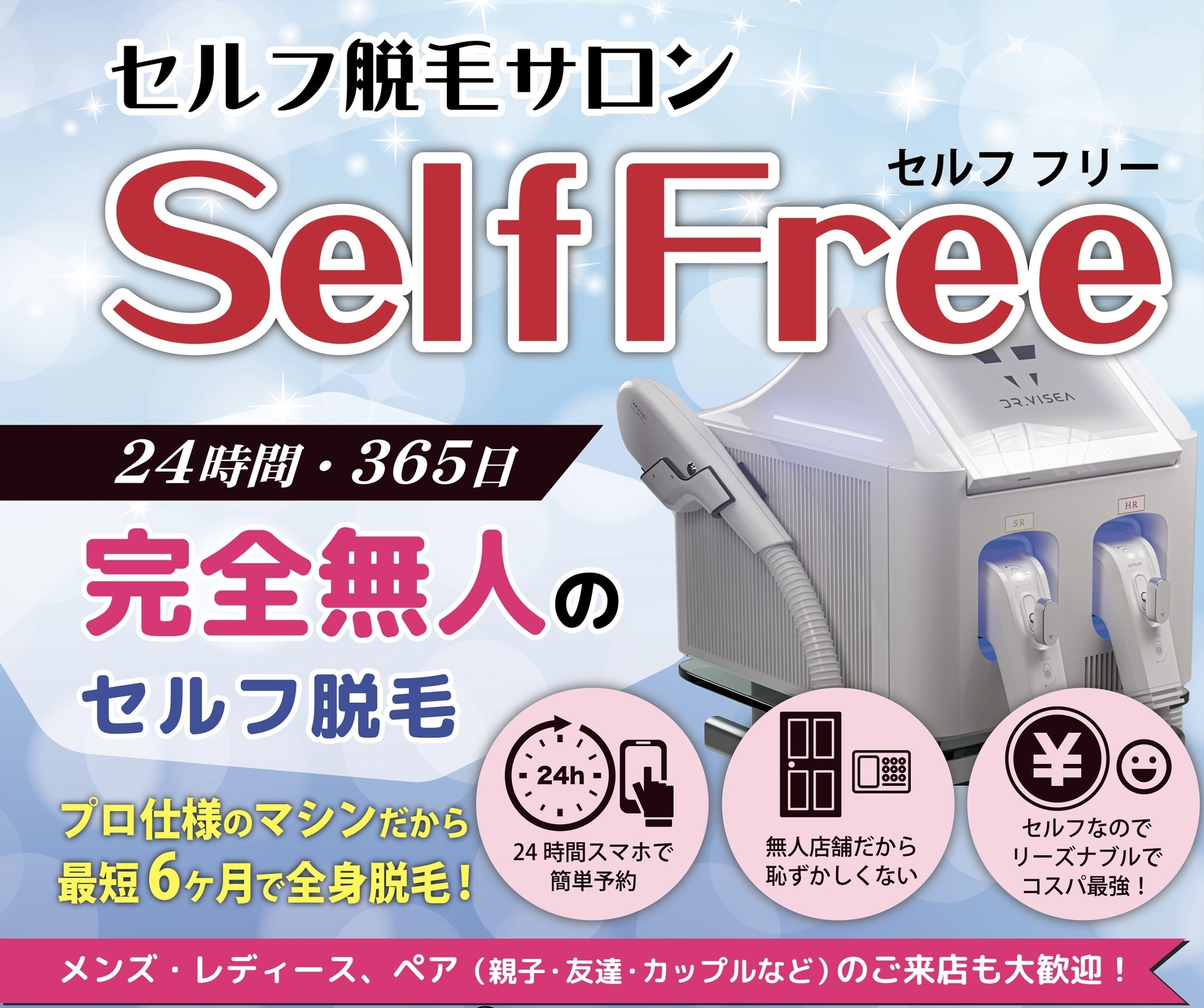 Self Free野江内代駅から徒歩3分24時間365日完全無人のセルフ脱毛サロン。24時間365日営業で予約が取りやすく、SHRとIPLの良いとこ取りマシンを時間内使い放題。都度払いや複数の月額プランでコスパよく、最短6ヶ月で全身脱毛を目指せます。1回あたり料金(税込)1,000円/回〜公式サイトを見るプラン1回あたり(税込)総額(税込)回数期間回数券初回限定60分(施術50分)¥1,000/回¥1,0001回-他6件のプランを見る